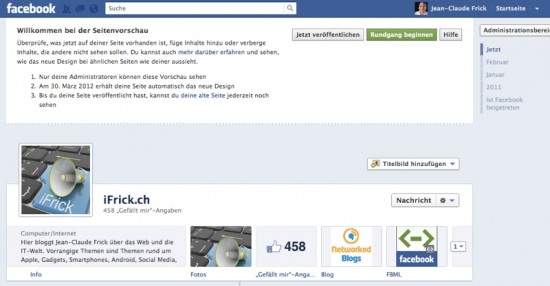 Ihr könnt die neue Funktion als Vorschau aktivieren und habt dann bis Ende März Zeit eure Fanpage so anzupassen das alles stimmt. Die Facebook Seite von iFrick.ch hab ich schon mal umgestellt.
