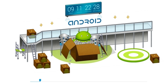 Dabei sieht man den Android Stand und wie dort ein Android Roboter langsam ausgepackt wird. Offenbar möchte Google dort etwas vorstellen bezw. auspacken.