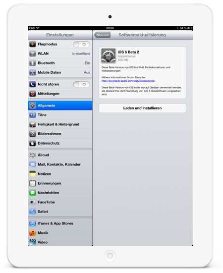 iOS 6 Beta 2 enthält wie immer viele Fehlerbehebungen und kann in Apples Developer Portal, oder als OTA Update von Geräten welche schon iOS 6 Beta 1 drauf haben, bezogen werden.