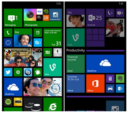 So wird es dynamische Ordner geben. Man kann dann einfach zwei Kacheln übereinander schieben um einen Ordner zu erstellen. In diesem werden weiterhin die Live-Tiles dargestellt, so das ihr auch Benachrichtigungen der Apps innerhalb einer Ordners erhaltet.